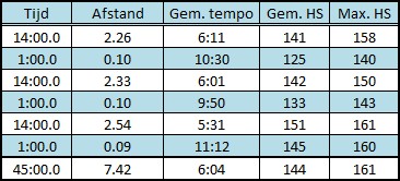 Het eerste blokje vandaag ging vrij moeizaam maar het tweede ging al een stuk beter. Zo veel beter dat ik besloot om het laatste blokje even gas te geven omdat (als het lukt) ik a.s. zondag ook wat sneller wil lopen dan dat ik tijdens de duurlopen doe.