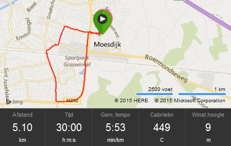 Moe, nat (vooral van de zweet) maar vooral ontzettend voldaan was ik na 29:50 thuis dus ik heb nog 10 seconden moeten doorrennen ;-)