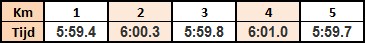 vandaag eindelijk weer eens met de spreekwoordelijke 2 vingers in de neus. Het rennen ging heel makkelijk en het retestrakke geplande tempo is volgens mij ook wel aardig gelukt! In totaal over de 5000 meter 30 minuten en 0,2 seconde gedaan en tussen de snelste en de langzaamste kilometer zit slechts 1,6 seconde... Hoezo vlak! ;-)